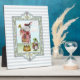 Cute Alice in Wonderland themed plaque with a unique illustration of W. Rabbit. In this colourful drawing. the White Rabbit is hard at work as a herald in the Queen of Heart's court. The perfect gift for Easter or room decor for an Alice in Wonderland themed kid's room or nursery.