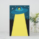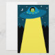 Cute and fun custom stationery for kids featuring a cartoon illustration of a little alien in his flying saucer type spaceship. The spaceship is about to beam something up. In the background is the night sky with the moon, stars and tree tops in black silhouette. You can make the stationery more personal by for example adding the child's name. Illustration and design by MheaDesign. For any enquiries regarding the design or artwork, please contact me through my Facebook page: www.facebook.com/MheaDesign