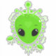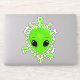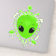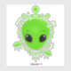 Kawaii style green alien sticker, with the words Peace, Hope and Love. Not all aliens are hostile!