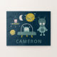 Cute Alien Space Planets Funny Blue Personalized Jigsaw Puzzle