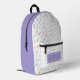 NewParkLane - Personalized Alphabet Backpack for kids or elementary school teachers, with a cute colourful pattern of letters, and a purple side and top. Add your kids name and school, or other text, for a personalized design. The panel colours can easily be changed.