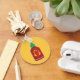 A cute red chili pepper with a fiery explosive background design on the red and green hot sauce bottle. The words read "Always Hot".