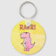 Cute And Angry Pink Cartoon T-Rex Old Paper Keychain