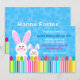 © Socialite Designs. Having an Easter Gathering? This fun Easter rabbits design is perfect if you like cute and colourful. Our design incorporates two bunnies, colourful Easter eggs and a blue floral background.