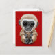 This adorable design features a small white baby gibbon with large black eyes. The lesser ape is sitting down with its feet beside each other and hands in its lap. The tiny gibbon is looking forward with large round eyes. Its head is slightly tilted to one side creating a curious look and feel. The over sized head and small body along with the details in the fur create a beautiful combination of a cartoon and realistic look. This unique design is perfect for all gibbon and animal lovers.