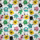 Cute kid friendly cartoon monster images make a colourful and fun pattern on this fabric. Images include purple monsters, black monsters with lots of legs, yellow montster with a big pink eye, green and blue monsters. . Colours include yellow, pink, black, green, teal on dotted background.