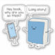 Here's a cute and funny cartoon design featuring a cell phone asking a book why it's so thick. The answer: Long story! This is a great design for lovers of reading and of physical books!