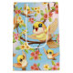 Cute and Happy Birds among Spring Flowers Medium Gift Bag
