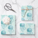 Cute and Happy Blue-Green Jellyfish Pattern Wrapping Paper Sheet