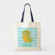 Kids who love cute dinosaurs and prehistoric themes are going to love this kawaii tote bag with its cartoon of green and yellow Dino with rounded spikes smiling so happily that one can't resist grinning too. Light blue stripes as background. This colourful, adorable and attractive dinosaur design is suitable for young kids and toddlers for them to bring to school or outings. Personalise easily with child's name.