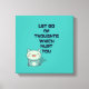 Let go of thoughts which hurt you. A cute and inspirational quote that reminds us to be kind to ourselves. Uplifting, inspiring, comforting and kind. There is an adorable illustration of a cute freckled teddy bear character ready to comfort and love you.