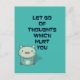 Let go of thoughts which hurt you. A cute and inspirational quote that reminds us to be kind to ourselves. Uplifting, inspiring, comforting and kind. There is an adorable illustration of a cute freckled teddy bear character ready to comfort and love you.