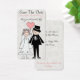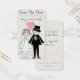 Wedding couple cartoon. Unique and original personalised engagement and save the date cards.