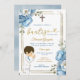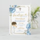 Cute Angel Boy Espagnol Bautizo Dusty Blue Gold Invitacion Fiesta Bautizo Mexicain Baptême Fiesta Argent Bleu Dusty Blue Fleurs Baptême Invitation, Bleu Mexicain & Argent, Thème Mexicain,
