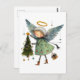 This cute Christmas angel with her tree is illustrated in modern folk art style. Did you know you can recycle your postcards by adding a frame and hanging them as miniature art? They make great holiday aesthetic home decor. AI assisted graphic purchased with commercial use. Artwork: RedHeronLighthouse