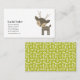 Have some fun with these business cards illustrated with a brown, antlered, cartoon style buck deer (or perhaps its a reindeer) graphic. The adorable woodland animal illustration makes it a perfect card for children's authors, early childhood educators, daycare owners, wildlife specialists or anyone who wants a friendly general purpose business card. Use the fill-in-the-blank fields to easily customize these cards with your name and contact info on the front. The back has a lime green geometric pattern print.