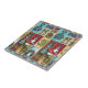 A ceramic tile with a unique and colourful collection of folk art style animals in a collage design. A variety of animals are found in this creative artistic design, which include a cobra, lion, dog, lizard, ostrich, zebra, rabbit, gecko, donkey and owl. This design has a unique style with a quaint and weird eccentric flair. I like it!