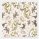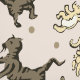 Elephant, rhino, monkey, tiger dancing, whimsical pattern in beige tones for nursery, kids' room