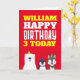 Cute Animals Kids Any Age Name Red Birthday Card