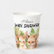 These Cute Animals Party Paper Cups feature an adorable and nature-inspired design, showcasing various forest animals such as fox, bunny, owl, bear, squirrel, and spin body surrounded by trees and pine, pure nature. The green colour scheme and cute illustrations make these cups ideal for a boy baby shower party with a woodland theme. Perfect for adding a touch of charm and whimsy to your celebration. Click on "Personalize this template" to customize the text. Scroll down and find the collection with matching items. And contact us if your don't find the product you are searching for or if you have an special request.