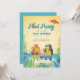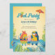 Invite your guests to your pool party with adorable birthday invitation featuring a cute hippo rabbit and panda ready for some summer fun. The back page features a spotty pattern and beachball.
