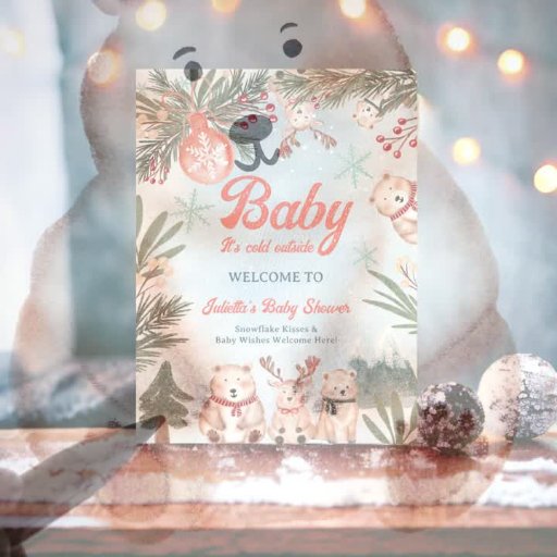 Cute Animals Winter Christmas baby shower welcome Poster
