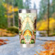 Anime fairy themed tumbler. An adorable anime fairy holding her chibi baby dragon. Cute fairy with big green eyes and white flowers in her hair.
