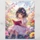 A sweet illustration of a little anime girl reading a book. She is surrounded by lovely nature with pink and purple flowers and musical notes floating above her. If your child likes anime, reading and music is perfect! Just stick it in a frame and you have adorable wall art for your daughter!