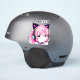 Personalized stickers with name or quote. Cute pink, teal and purple little anime girl with sad eyes and wearing headphones. Cute for gamers or music lovers.