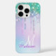 Pretty chic and elegant girly iridescent glitter drips in unicorn rainbow aqua turquoise purple colours. A unique girly case to protect your device. Beautiful, modern and cool cover for the trend-savvy and art-loving hip trendsetter. This design features holographic faux glitter drips in iridescent shades of mint and purple. The printed glitter gives a playful, dazzling effect that adds personality to the iPhone, capturing the fun of glitter in a sleek, girly style. Personalise it as a gift for valentines day, Christmas or as a gift in general it makes a great gift idea for any girl, woman or even kids who loves modern sparkly cute magical designs. PLEASE NOTE: These are flat printed graphics - no real glitter, jewels or raised parts.