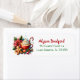 Coca chaud fantaisie adorable avec crème fouettée, sucres de canne, pains d'épices, ornements de Noël et poinsettia adresse de retour autocollants d'étiquette fait dans un joli style aquarelle. Arrière - plan plaid rouge et turquoise.
