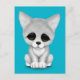 This cute design by artist Jeff Bartels features a small Arctic fox cub with large black eyes. The puppy is sitting down with its paws beside each other and is looking forward with its head slightly tilted to one side. The over sized head and small body along with the details in the fur create a beautiful combination of a cartoon and realistic look. This unique and adorable baby fox design is perfect for all animal lovers.