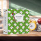 Cute, art teacher class planner designed with little artist's palette on front and spine trim. Perfect for elementary or homeschool teachers with templates provided. Green duo toned background offsets the pattern of little white artist's palettes on front and back.
