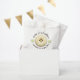 The expression "cute as a button" is taken literally on this fun baby shower or Sip and See favour bag. A round stitched border frames the image with a large button in the centre highlighting the theme. Add a personalized message below. Perfect for the honoree who loves to sew. Can also be used for a Sip and See. Versatile enough to use for a boy, girl or even multiples! Available with matching products.