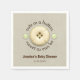 The expression "cute as a button" is taken literally on this fun baby shower or Sip and See napkin. A round stitched border frames the image with a large button in the centre highlighting the theme against a light linen background. Makes a perfect meal accompaniment for anyone who loves to sew. Can also be used for a Sip and See. Versatile enough to use for a boy, girl or even multiples! Available with matching products.