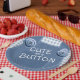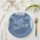 Cute as a button denim overalls and blue gingham pattern paper plate to compliment our baby shower invitation set.