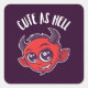 Vector cartoon illustration of a devilishly cute little devil with big eyes with Cute as Hell text.