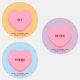 Pink heart on light orange, purple and blue background colours. All colours are editable.