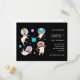 Birthday invitation postcard with an image of astronaut animals in see-through helmets floating in space. Giraffe, mouse, cat & rabbit. So adorable and fun.