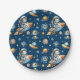 Cute Astronaut Cat Space Galaxy Pattern Navy Blue Paper Plate