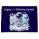 This cute gift bag is perfect for your little space explorer. A adorable astronaut hovers among the clouds with planets and a cute rocket in the background.