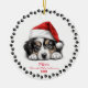 Cute Australian Shepherd Dog Santa Hat Pencil Art Ceramic Ornament