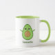 A funny mug with a cute avocado illustration in cartoon style and a customizable text below: perfect as gift for a friend or for your coffee at work!