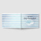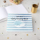 Light blue and white watercolor striped background, celebrating a baby boy. Cute, light blue whale with white seashell in the background just below "baby memory book" text. Baby's name template created just for you!