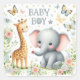 Cute Baby Boy Elephant and Giraffe with Flowers and Butterflies Square Sticker