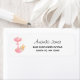 Address labels with an adorable illustration of a little brown baby bunny wearing a tiny golden crown. Carried by balloons in a pink heart blanket.