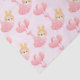 Tissue paper with an adorable pattern of a little brown baby bunny wearing a tiny golden crown. Carried by balloons in a pink heart blanket.