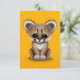 This cute design features a small cougar cub with large ears and deep black eyes. The kitten is sitting down with its paws beside each other and is looking forward which creates a symmetrical pattern. The over sized head and small body along with the details in the fur create a beautiful combination of a cartoon and realistic look. This unique design is an adorable example of this wonderful and majestic big cat.