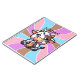 Personalized Adorable cow in a Kawaii cartoon drinking boba, or bubble tea with a pink, blue, purple and brown background.