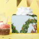 This very cute Christmas wrapping paper features an adorable pattern of a fawn standing on a Christmas wreath. This would make great wrapping for kids' gifts. The background colour can be customized to suit in the options panel.